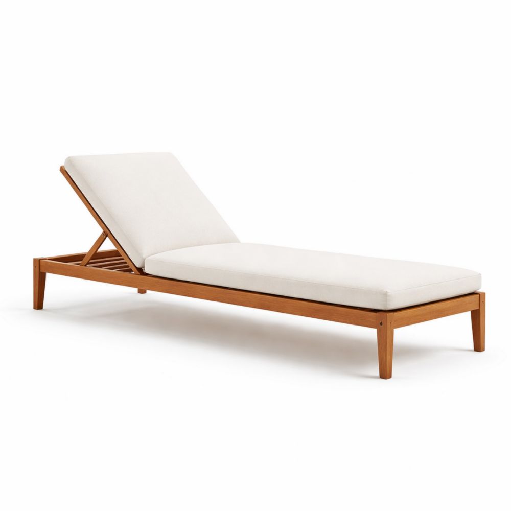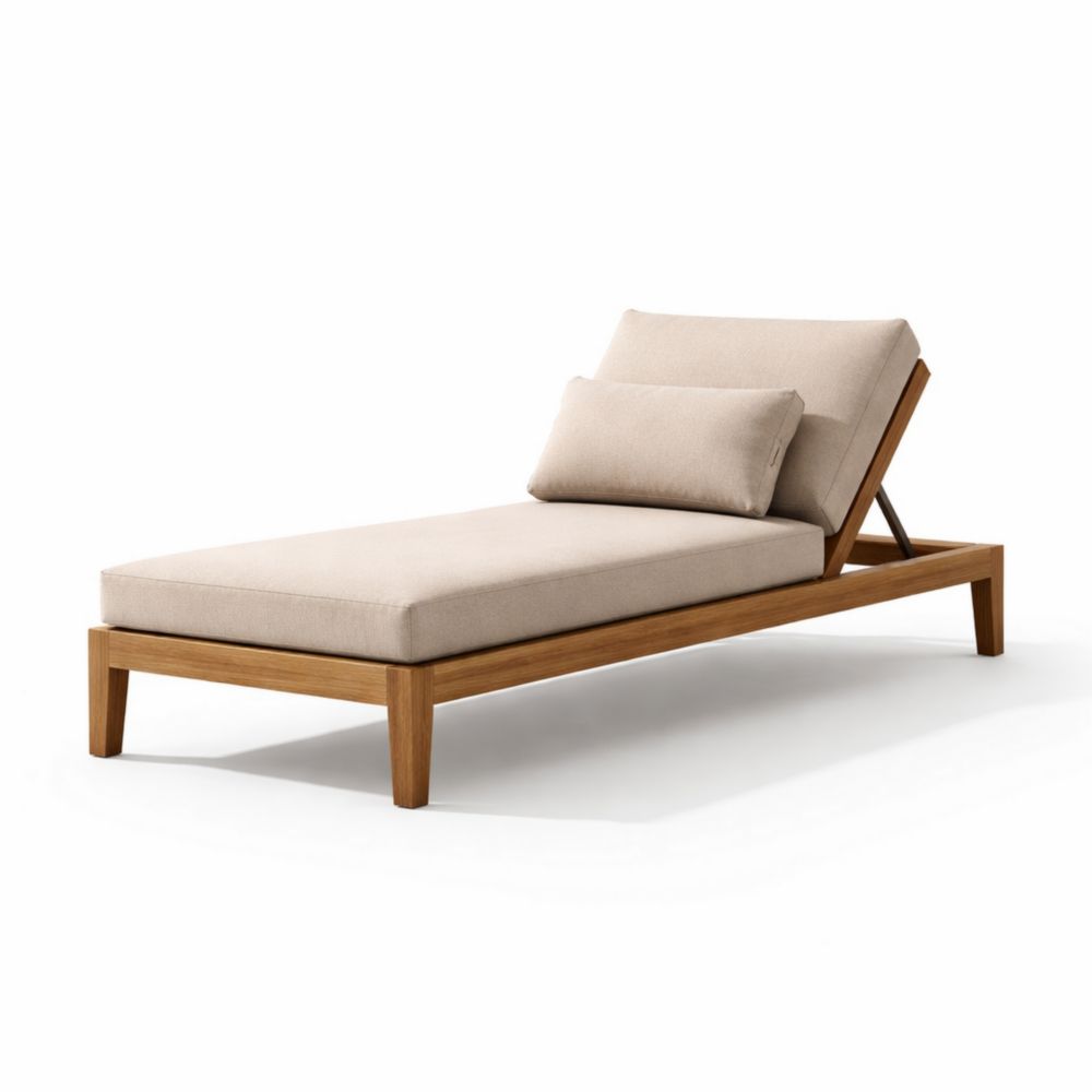 Chaise Longue in Legno e Tessuto Beige