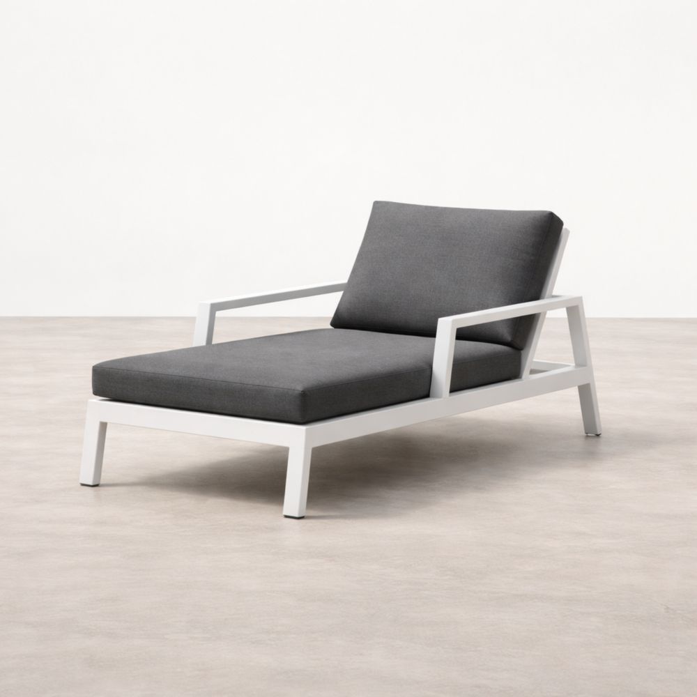 Lettino Prendisole in Alluminio Bianco con Cuscini in Poliestere Grigio