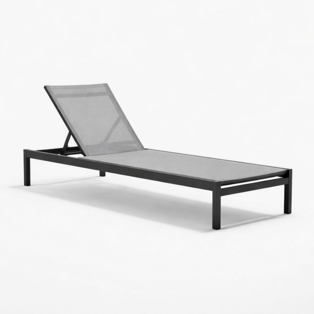 Lettino prendisole in alluminio nero con tessuto regolabile
