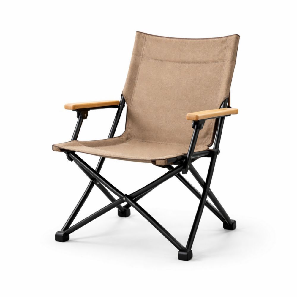 Sedia da Campeggio Pieghevole Marrone Telaio in Acciaio Braccioli in Legno