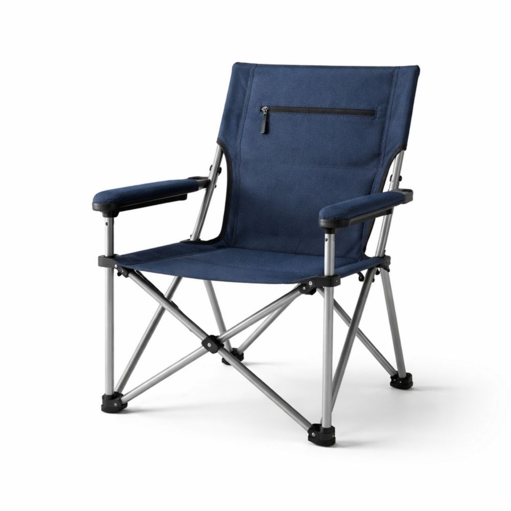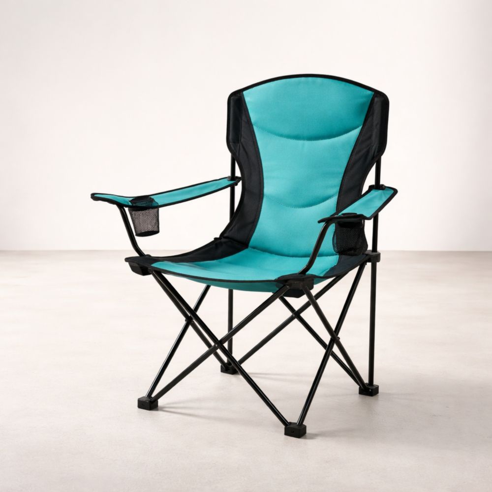 Sedia pieghevole in tessuto poliestere blu/nero con portabevande