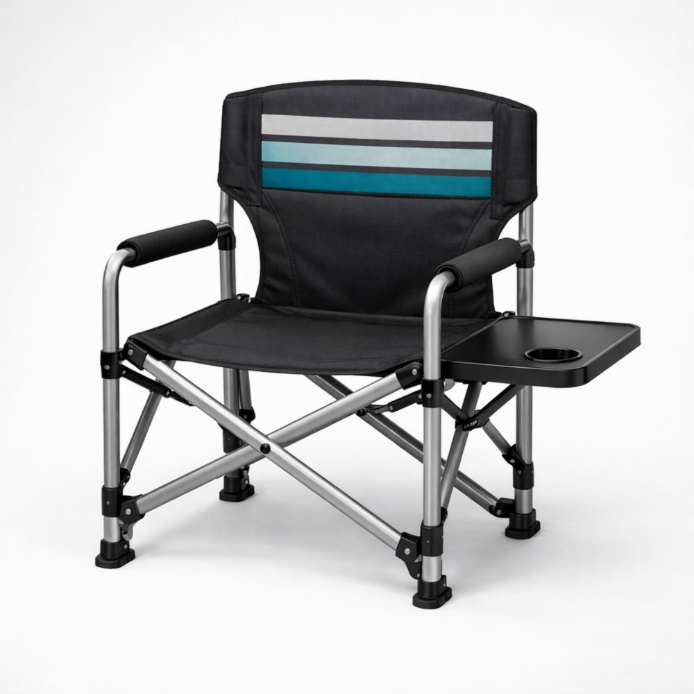 Sedia Pieghevole da Campeggio in Acciaio e Poliestere con Vassoio