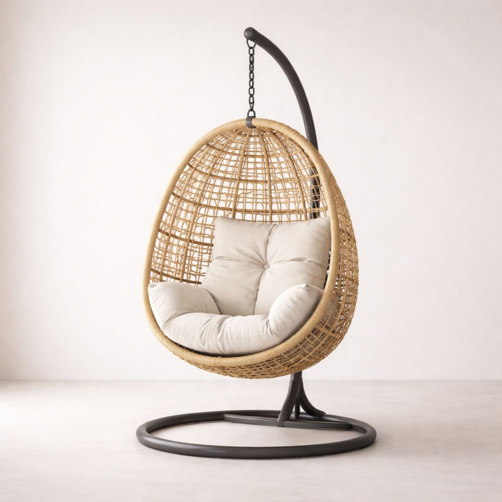 Sedia Sospesa a Uovo Metallo con Cuscini Beige