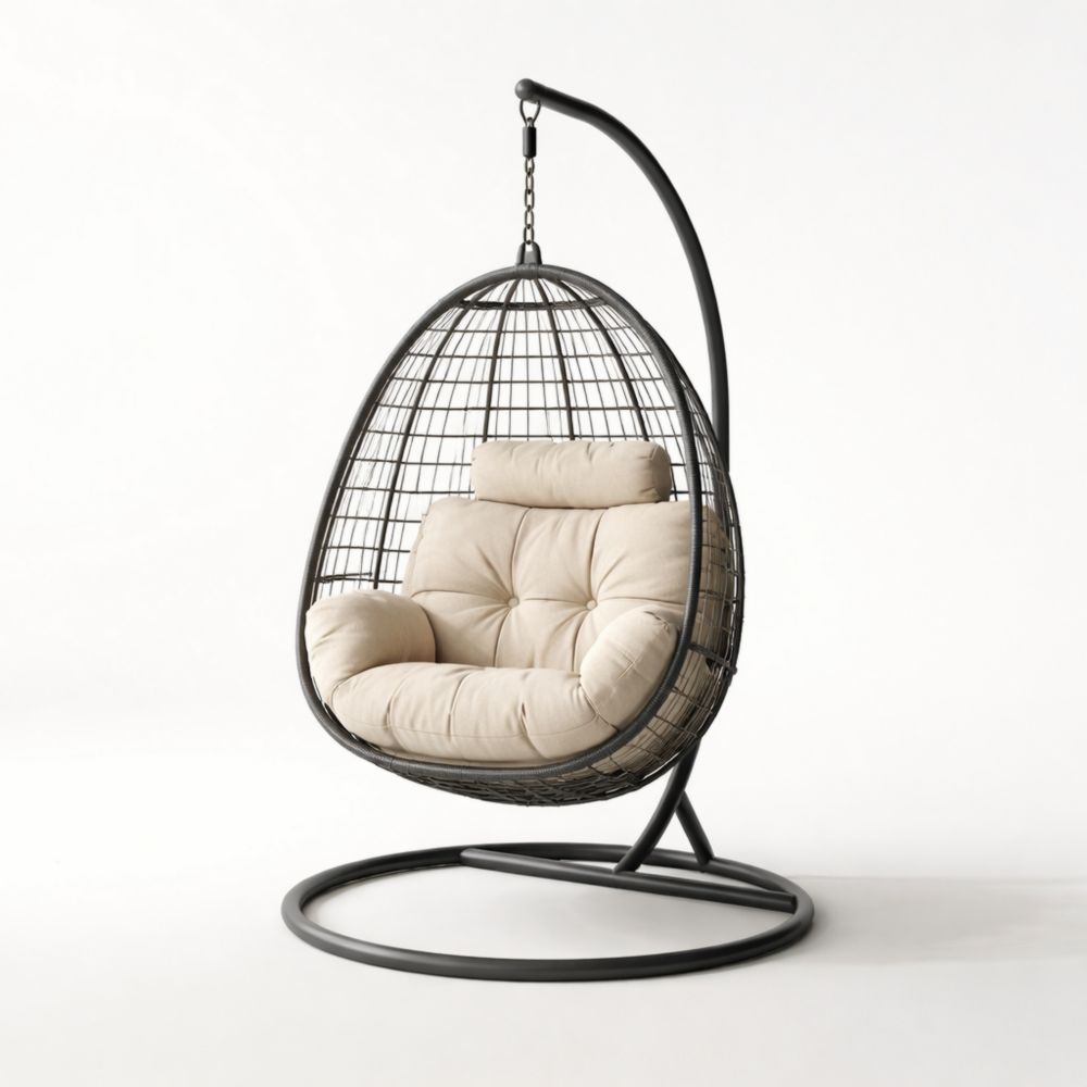 Sedia Pensile in Acciaio Nero con Cuscino Beige