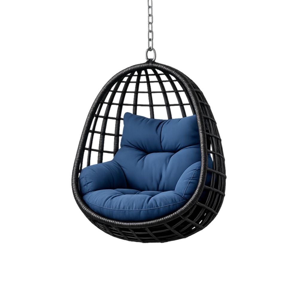 Sedia a dondolo sospesa in rattan nero con cuscino blu in poliestere