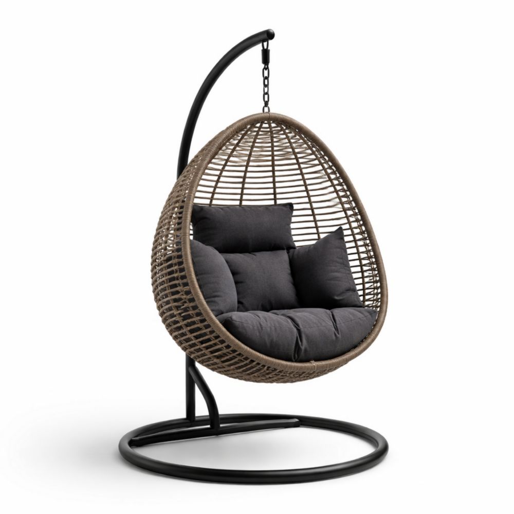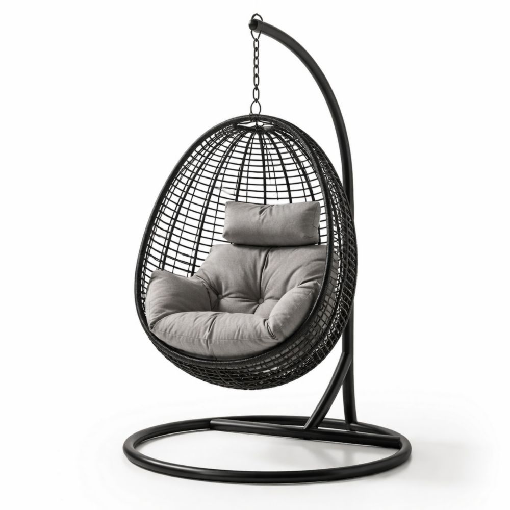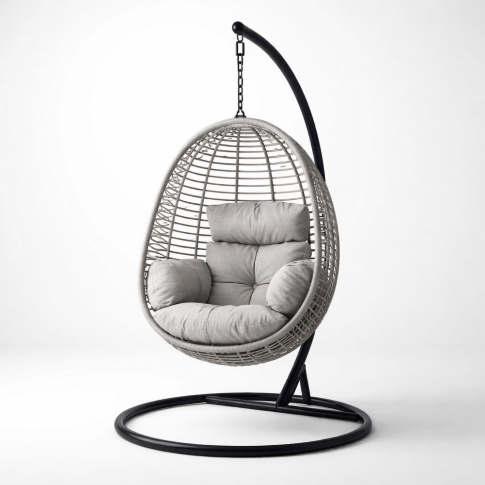 Sedia Sospesa in Polyrattan Grigia con Cuscini in Poliestere
